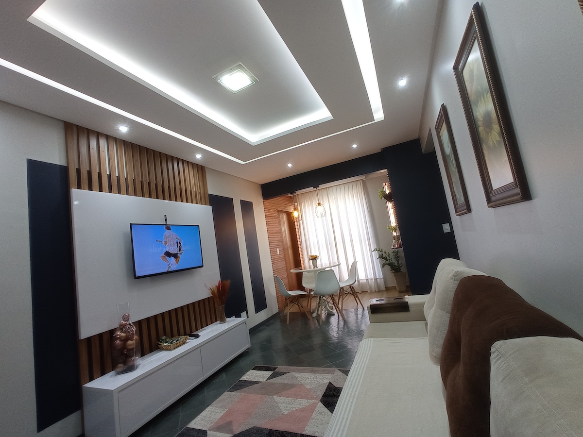 Leve toda família a este apartamento mobiliado, e tenha conforto ao longo de sua estadia. Sobre os aposentos: o imóvel possui 1 quarto com cama de casal + ar condicionado (somente frio), e uma suíte com cama de casal + ventilador. Sala completa ampla e espaçosa,sofá que pode ser usado como sofá cama, Wi-Fi.. Cozinha completa com todos equipamentos e utensílios Lavanderia completa 1 vaga de garagem coberta Próximo ao shopping, farmácia, mercado, sorveteria, 5 minutos do centro