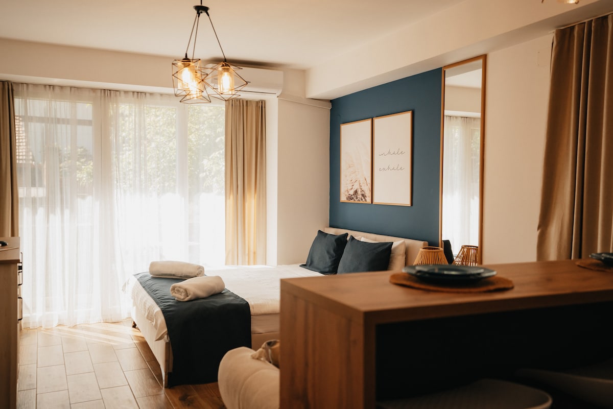 Stúdió 2 fő részére, mindössze két percre a városközponttól. Egy franciaággyal, konyhával, hűtőszekrénnyel és mini sütővel , kábel-TV-vel, ingyenes Wi-Fi-vel, törölközőkkel és saját fürdőszobával . Ez a szálláshely azoknak megfelelő, akik az óváros központjában szeretnének lenni. Minden, amit meg kell látogatnod Ohridban, történelmi műemlékek, templomok... több méterre vannak tőled, a repülőtér 10 km-re van tőlünk, a buszpályaudvar pedig 5 km-re. Segítünk, hogy minden kérdésedre válaszolj, ha szükséged van rá.