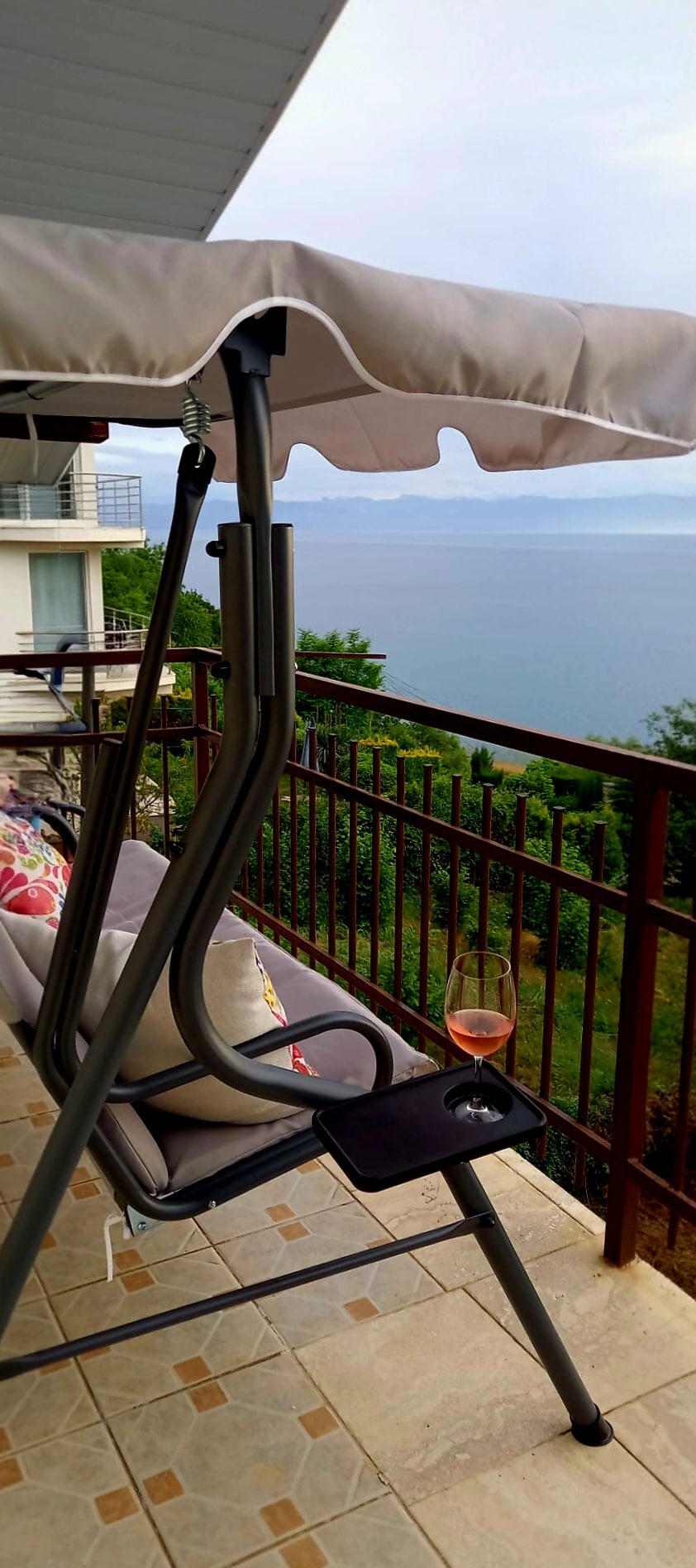 Welcome to our cozy wooden house in Ohrid's National Park Galicica! My husband and I lovingly rent out this charming home, perfect for a family vacation. Enjoy stunning views from our balcony. Explore nearby attractions like the old town of Ohrid, Lake Ohrid, and Sveti Jovan Kaneo Church. The beach is just a 7-minute drive away. We look forward to welcoming you, Family Mohr❤️