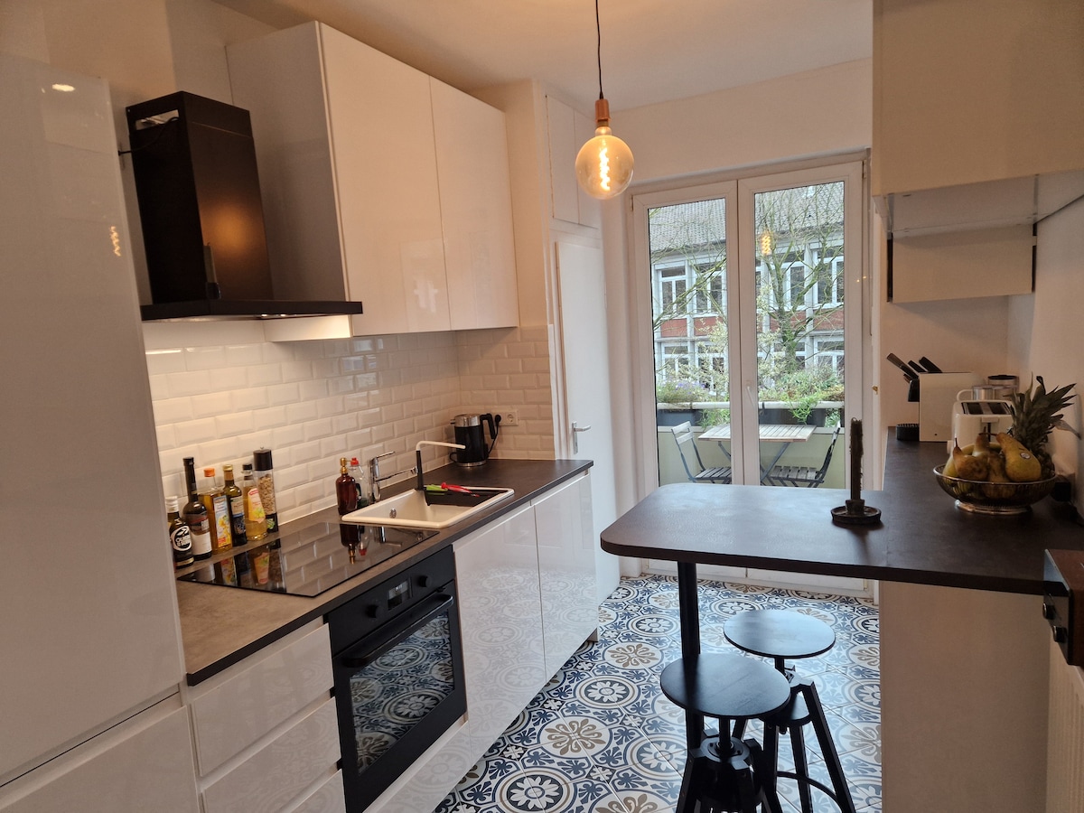 Ez a 75m2-es loftlakás Münster divatos Kreuzviertel kerületében a sétány közelében található. Pár perces sétával elérhető a vár, a városközpont, az egyetem és az óváros. A modern apartman egy hátsó házban található a csendes udvarban. A közvetlen közelben hangulatos kávézók, bárok, pubok, éttermek és a színház.