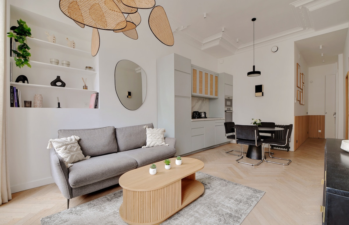 Üdvözlünk a Párizs nyüzsgő Grands Boulevards kerületében található lakásunkban. Előkelő üzleteiről, trendi éttermeiről és élénk éjszakai életéről ismert. A Grands Boulevards és a Bonne Nouvelle metróállomások 5 perces sétával elérhetők, így könnyedén elérheted a város összes híres turisztikai helyszínét. Két tágas hálószobájával és nagy nappalijával ez a lakás tökéletes arra, hogy meleg és fényűző légkörben üdvözöljön.