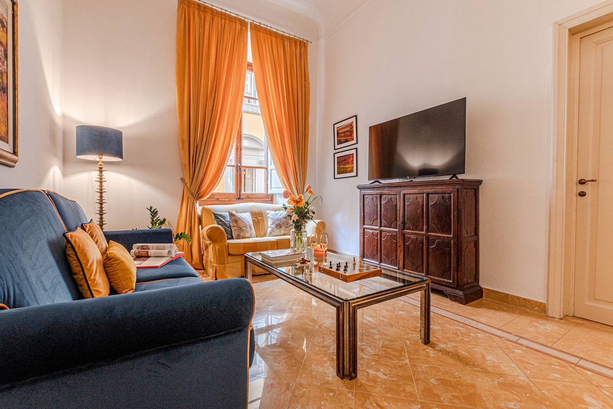 L’appartamento è in un silenzioso ex convento del XVI secolo e si trova nel cuore di Firenze accanto a via Tornabuoni, la via delle boutique più famose ed è circondato dai migliori ristoranti. L’appartamento grazie all’elegante ristrutturazione è dotato di rifiniture di pregio come gli splendidi marmi dei 2 bagni o l’affascinante camino a gas e di tutti i confort wi-fi, ac e cucina moderna completamente attrezzata. Le maggiori attrazioni turistiche si raggiungono in meno di 10 minuti a piedi.