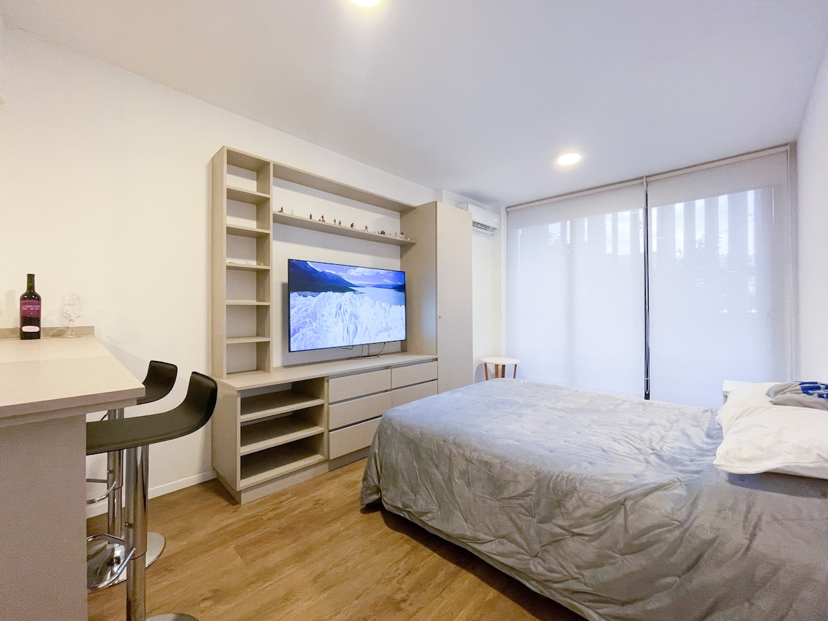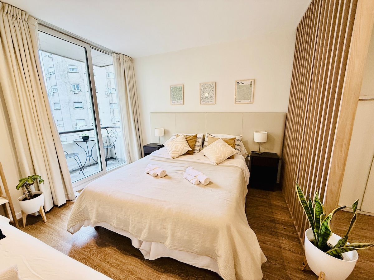 Lenyűgöző lakás San Telmo szívében. Közvetlen kilátás a parkra. Sétatávolságra a Plaza Dorregótól, a metrótól és Puerto Maderótól. BA turistabusz-pályaudvar mindössze két háztömbnyire. 1 hálószoba king méretű ággyal. Teljes fürdőszoba. Rendkívül csendes, dupla üvegablakokkal és 2 légkondicionálóval mindkét helyiségben. Okostévé. Nappali integrált konyhával. Teljesen felszerelt. Étkezőasztal, kanapé, 25 MB WIFI és rengeteg fény! Ideális pároknak és utazóknak! Közeli helyek: MAMBA - Dorrego Café - SAGARDI San Telmo - Café San Juan.