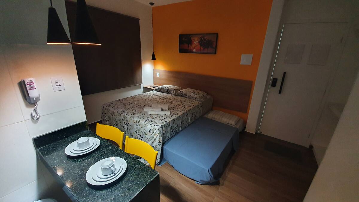 Szállj meg egy teljes kitnetben, amely ideális a szálláshelyeden eltöltött idődhöz! A helyiség tervezett, szobával, légkondicionálóval, felszerelt konyhával és saját fürdőszobával rendelkezik. Aracaju központjában található, közel a piacokhoz, éttermekhez és látnivalókhoz. Kiemelt témák: • Wifi • Légkondicionált légkör • Teljes konyha felszerelve • Biztonsági rendszer 📢 A Kitnet egy felső szinten található, és lépcsőn kell felmásznod, hogy megközelíthesd.