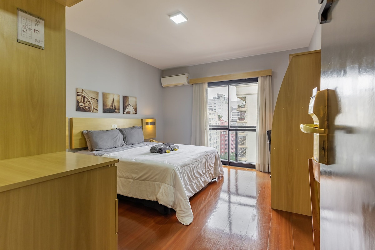 Üdvözöllek a BRS Augusta-ban, egy új, funkcionális, modern és hangulatos stúdióban São Paulo egyik fő régiójában! Ideális környezet azok számára, akik élvezni szeretnék a szabadidejüket, vagy a városban dolgoznak. Élvezd az Avenida Augusta elhelyezkedését, a változatos éttermeket, a közelben található Av Paulista-t és a metróállomást, hogy felfedezd a várost és a környéket São Paulo fő kórházai közelében. Ne vesztegesd az időt, és foglalj!
