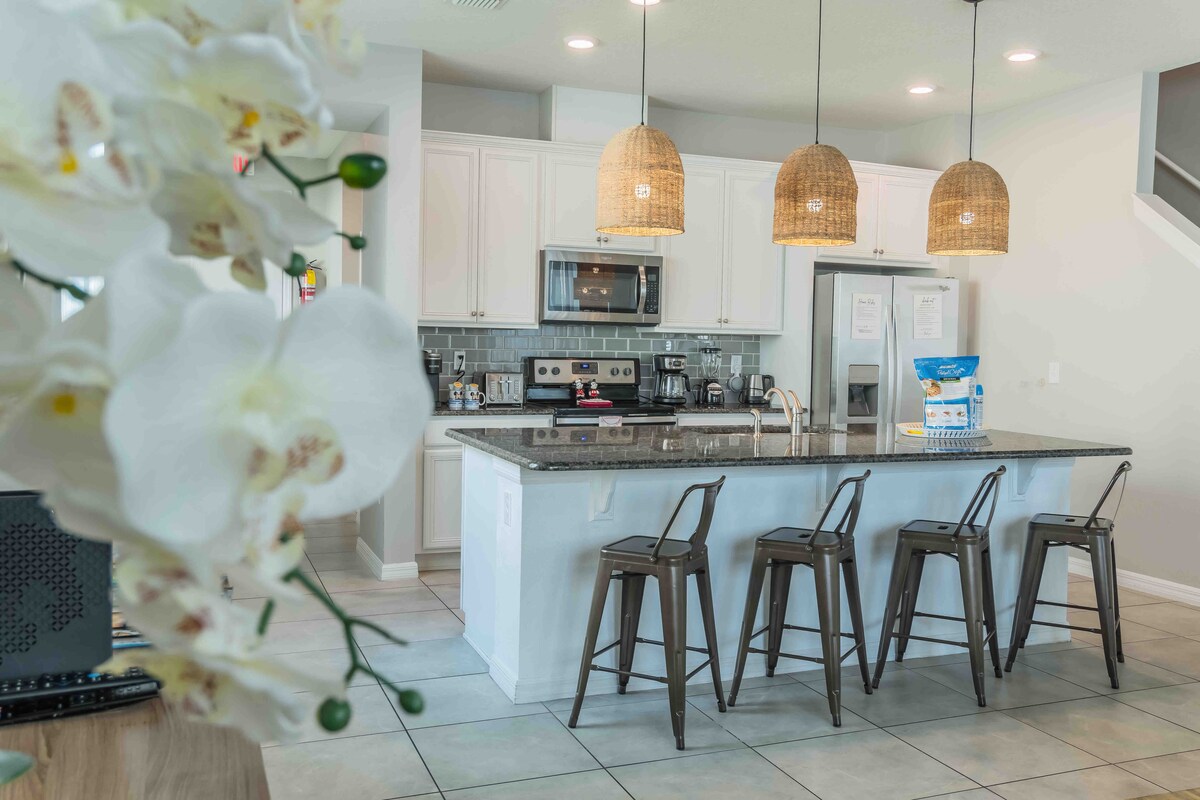 Pihenj ebben a gyönyörű és kényelmes sorházban, amely a Compass Bay üdülőhelyen található, egy teljesen zárt nyaralóközösségben, amely mindössze pár percre található a Disney-től,üzletektől, üzletektől, éttermektől, élelmiszerboltoktól, például a Walmarttól, a Targettől és a Publix-től. A házunk egy legfeljebb 7 fő befogadására alkalmas. Saját mosoda és teljesen felszerelt konyha, vadonatúj, rozsdamentes acélból készült készülékekkel. A mi helyünk kiválasztása garantálja a legörömtelibb és legemlékezetesebb élményt.
