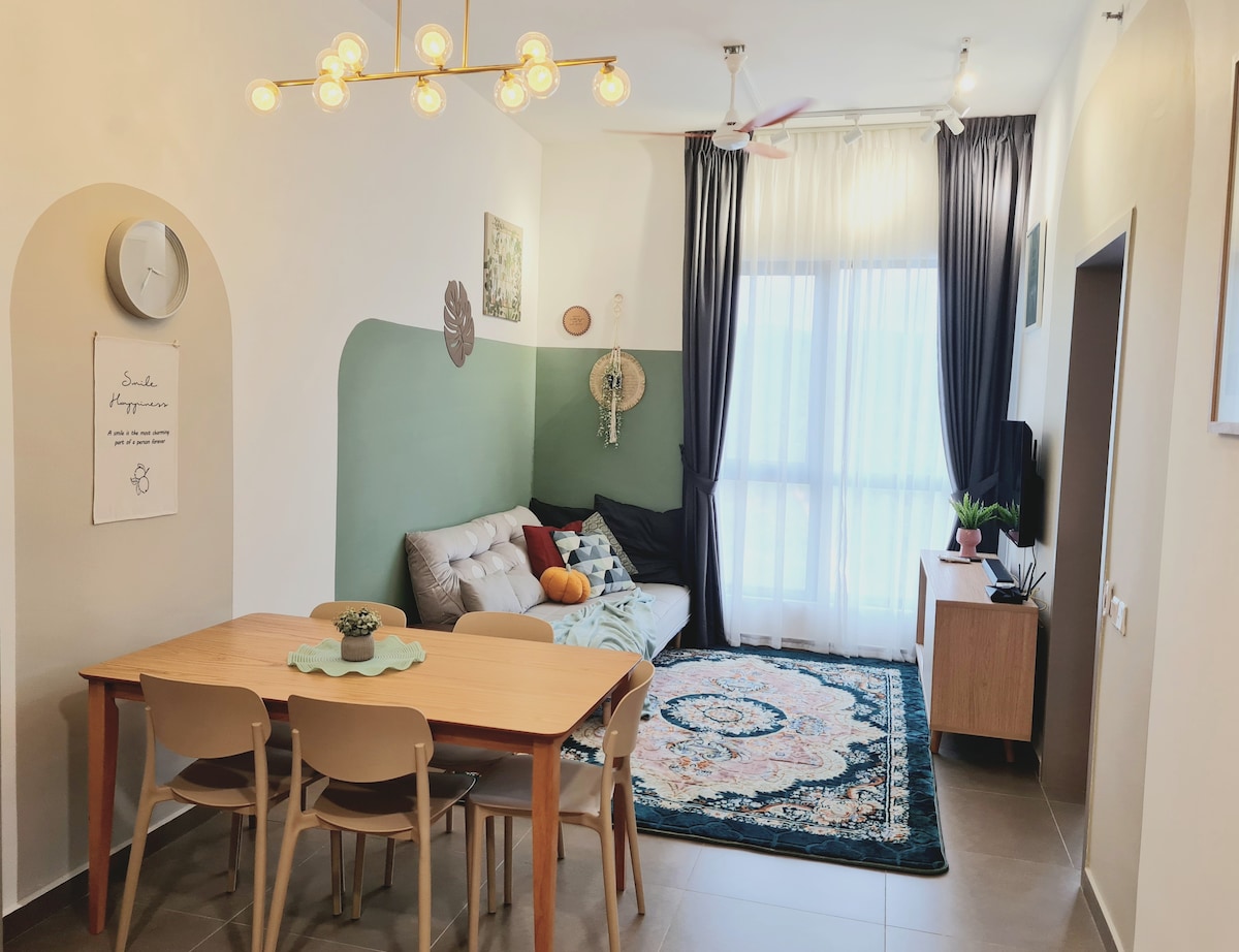 Üdvözlünk a SweeHome @ MOSSAZ-ban Empire Cityben, ahol a rusztikus báj találkozik a minimalista eleganciával. A Damansarában, a Petaling Jayában és a KPJ Damansara Specialist 2 nevű Utama szomszédságában található otthonunk nyugodt menedéket kínál a természetes elemek és a modern egyszerűség tökéletes keverékével. A nappaliterület kiemeli a semleges tónusokat, a tiszta vonalakat és a hegyekre nyíló kilátást, amelyek meghatározzák a minimalista esztétikát. Szállj meg, és tapasztald meg a rusztikus báj és a modern kényelem tökéletes keverékét.