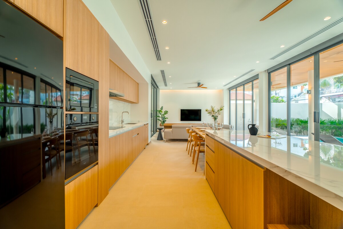 Luxusvilla modern dizájnnal és saját medencével, amely tökéletesen illik a családoddal vagy barátaiddal eltöltött idődhöz. Békés környéken található, közel minden kényelmi szolgáltatáshoz, valamint Rawai és Naiharn strandjaihoz. ez a pazar villa egy teljesen márvánnyal borított úszómedencével rendelkezik, és sós vizes szűrőrendszerrel van felszerelve. Belül 140 m2 alapterületű, egy teljesen felszerelt konyha számára nyitott nagy nappalira, valamint 3 saját fürdőszobával rendelkező hálószobára oszlik.