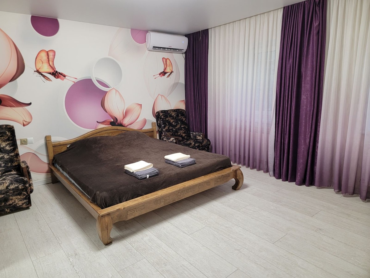 Hangulatos, világos, 3 hálószobás lakás Odessza történelmi részének szívében. A város minden látnivalója és építészeti emléke, butikja és étterme sétatávolságra található. Minden, ami egy felejthetetlen nyaraláshoz kell. A lakásban két hálószoba és egy nappali található .