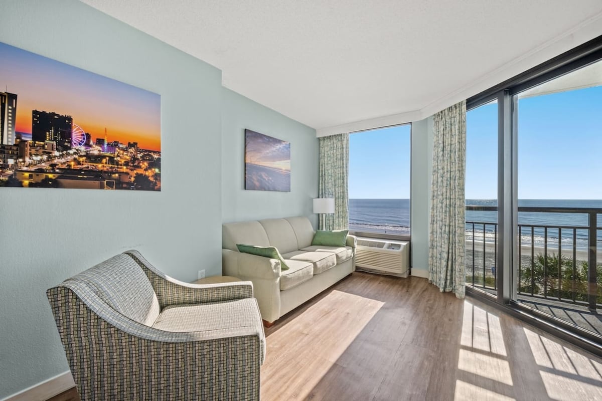 Lélegzetelállító, tengerparti lakás a 12. emeleten, Myrtle Beach szívében! Ez a napsütötte oázis 6 főnek ad otthont, és saját erkéllyel rendelkezik, ahonnan lenyűgöző kilátás nyílik az Atlanti-óceánra. Élvezd az üdülőhelyi kényelmi szolgáltatásokat, beleértve a beltéri/kültéri medencéket, a pezsgőfürdőt és a közvetlen tengerparti hozzáférést. Ez a szállás tökéletes családoknak vagy egy romantikus kiruccanáshoz, és saját munkaterületet és nagy sebességű Wi-Fi-t is kínál. A tökéletes tengerparti nyaralás vár rád!