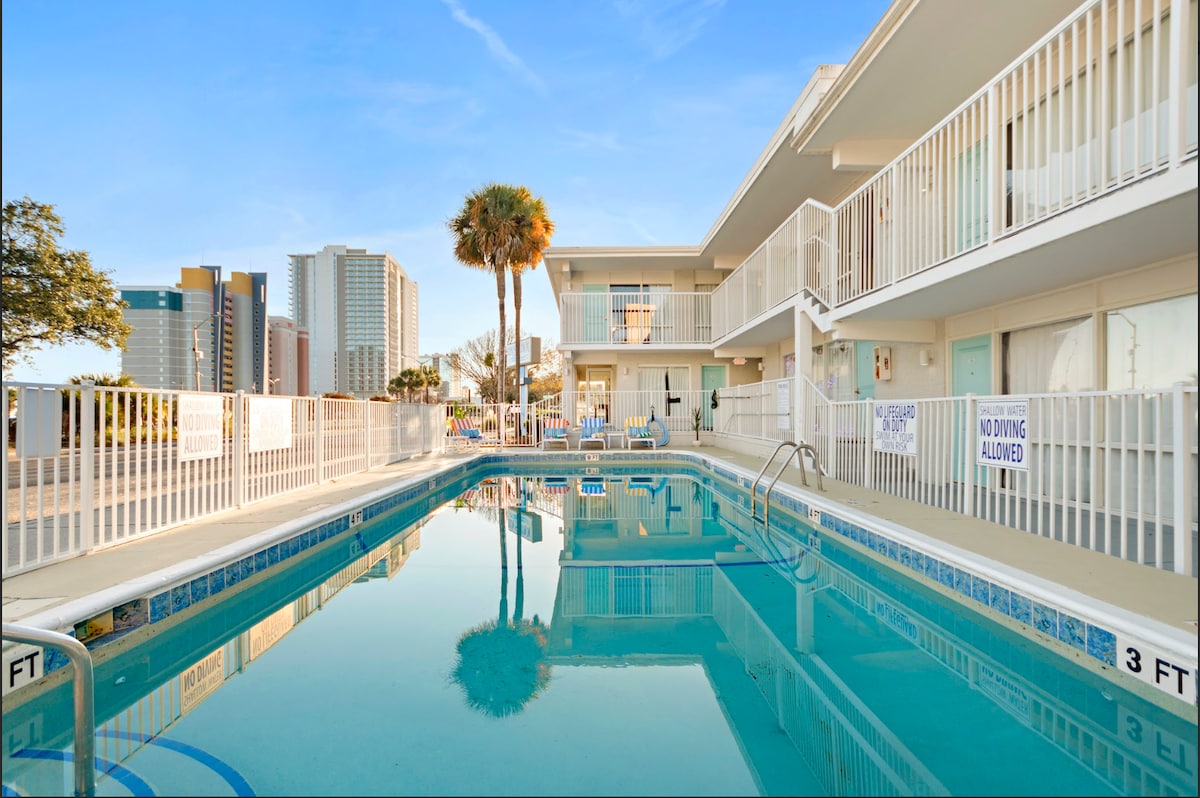Welcome to the new Fin’s Inn— thoughtfully refreshed for comfort, ease, and relaxed beach living. Just steps from the sand and Boardwalk, this freshly updated studio sleeps two and is perfect for couples or solo travelers. Enjoy upgraded bedding and linens, refreshed décor, and enhanced in-room amenities, plus a full kitchen, pool, and game lounge - all under new ownership and management with a renewed focus on cleanliness, safety, and responsive guest care for a better stay.