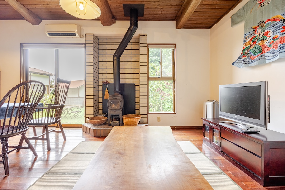 1.5 hour drive from Tokyo 1hour drive from Narita and Haneda airports Take your children for a walk on the beach Afterwards, enjoy a beer on the spacious wooden deck And of course, BBQ in the garden at night! Fresh seafood caught in the sea of Chiba and and fresh vegetables Even if it rains, you can BBQ on the wooden deck under the eaves of the roof or on the covered tile deck. The lighting in the garden allows you to play outside even at night.