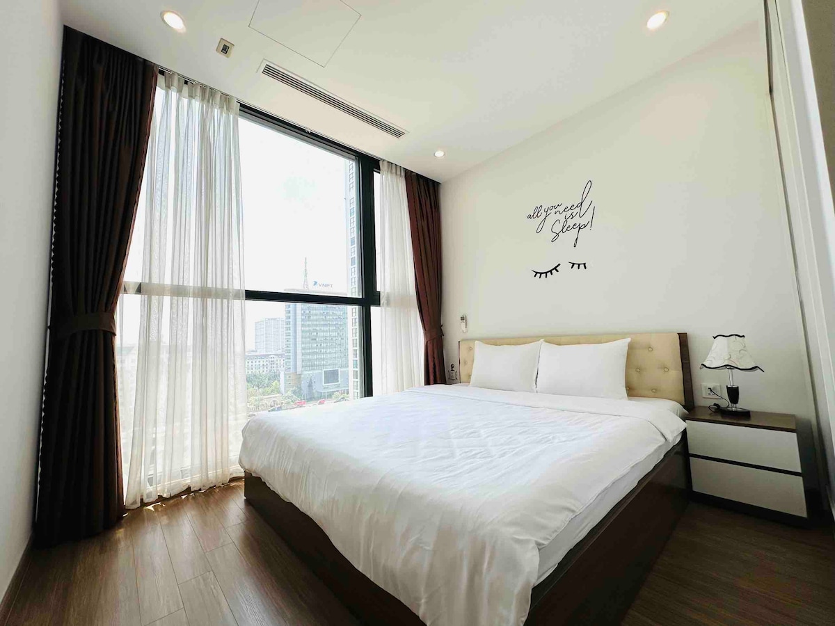 Gyönyörű ● lakás a C7 - VINHOMES D'CAPITALE épületben, amely a jó kiszolgálásról, a luxusról és a kiváló minőségű lakásról híres. 2 HÁLÓSZOBÁS ● apartman, 2 fürdőszoba, 1 modern fürdőkád, 1 vadonatúj és bútorozott tágas nappali napsütötte erkéllyel. Kilátás a tóra és kilátás a városra. ● Hálószoba nagy méretű ággyal és minden puha ágyneművel, kétirányú légkondicionálóval, amely jó és mély alvást biztosít. ● Okostévé Wi-Fi-vel, NETFLIX. ● Hűtőszekrény, mosógép.