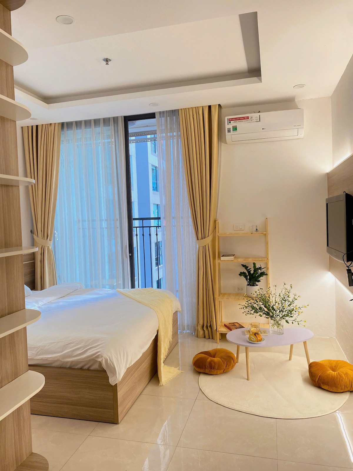 Kiváló minőségű, modern és egyedi, tengerre néző stúdióapartman Vinhomes Smart Cityben. A lakás tele van bútorokkal, a közmű fiatal és dinamikus, teljes testű tükörrel és projektorral (Netflix, Youtube) nagyon laza. - Automatikus érkezés/távozás a részletes érkezési utasításoknak megfelelően - 35 km-re a Noi Bai repülőtértől, 15 km-re a Hoan Kiem-tótól, 3 km-re a Vincom Mega bevásárlóközponttól