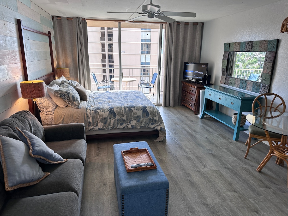 Üdvözlünk a Royal Kahanában! A privát lanaiból nyíló kilátás első osztályú. A kilátás magában foglalja az óceánt, a naplementét, a szomszédos szigeteket, a hegyeket és még a hosszúszárnyú bálnavadászatokat is. Pihenj a felújított stúdiónkban, ahol minden kényelmi szolgáltatás megtalálható, amire szükséged lehet egy csodálatos tartózkodáshoz. A legújabb fejlesztések közé tartozik a frissített világítás, a műalkotások, a bútorok, az összes új ágynemű és párna, az új és további ülőhelyek a lanain, valamint az OLED tv. USB-portok ágy és konyha mellett. Nagyszerű pároknak, kanapéval 3 férőhelyes.