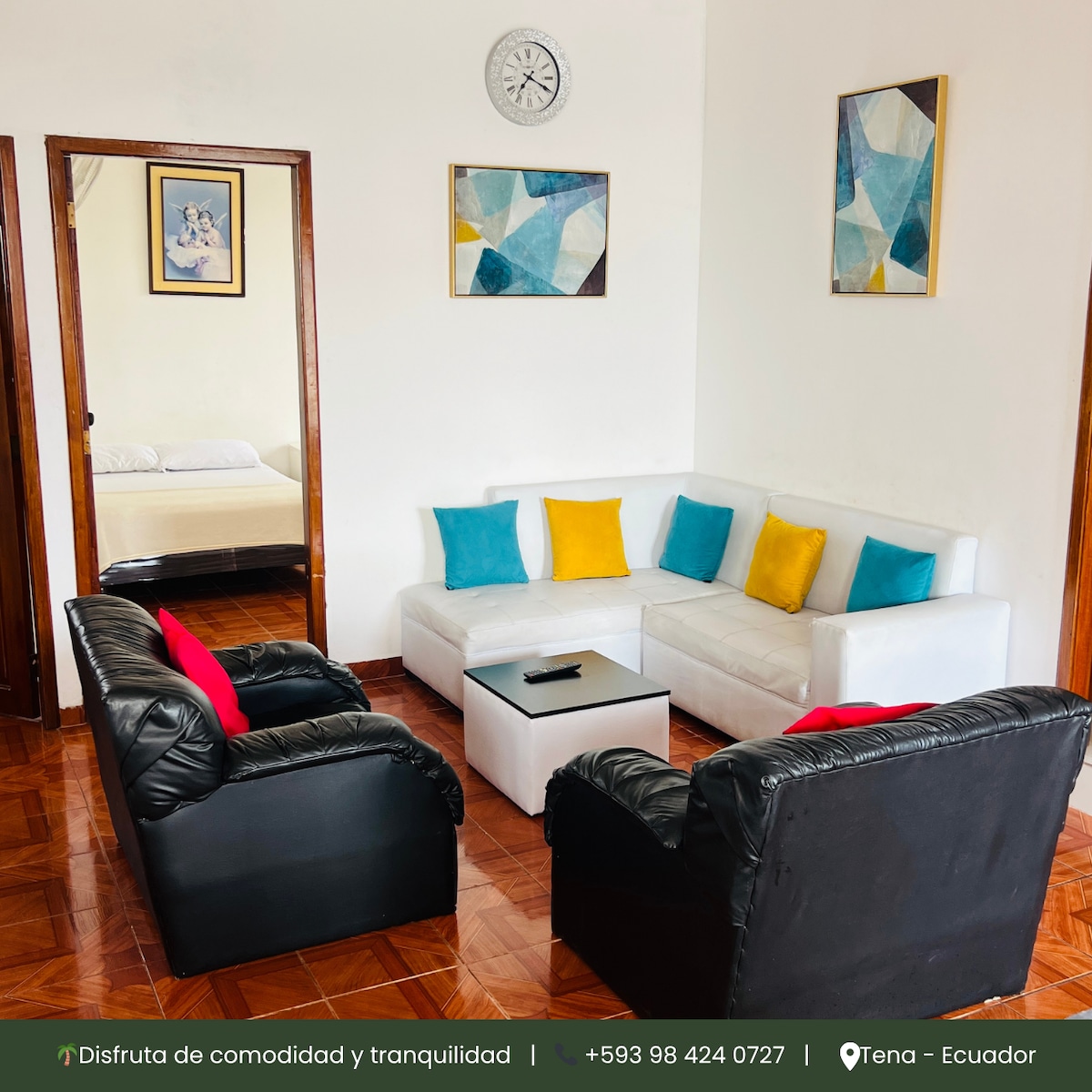 Teljesen független apartman Központi, csak sétálni kell Éttermek, jellegzetes ételek, szupermarketek, ruházati üzletek, buszmegálló, Tena Terminal, Centinela Terminal, José María Velasco Kórház A Malecón 5 perc alatt elérhető Misahualli 30 perc alatt elérhető A szálláshelyen bőséges hely áll rendelkezésre, hogy otthon érezd magad Netflix Internet Ingyenes, biztonságos garázs a helyszínen Meleg víz Biztonsági kamerák A háziállatodat szívesen látjuk