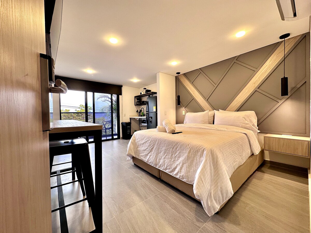 Ez a modern, funkcionális loft teljes konyhával, sütővel, mikrohullámú sütővel, mosógéppel, légkondicionálóval, okostévével és teljes fürdőszobával rendelkezik. Tökéletes üzleti utakhoz, városi kiruccanásokhoz vagy hosszabb foglalásokhoz. Az Estadio városrészben található, csak néhány lépésre az Atanasio Girardot stadiontól, és közel a metróhoz, éttermekhez és üzletekhez. Praktikus és kényelmes hely, hogy szabadon és stílusosan élvezhesd Medellín-t.