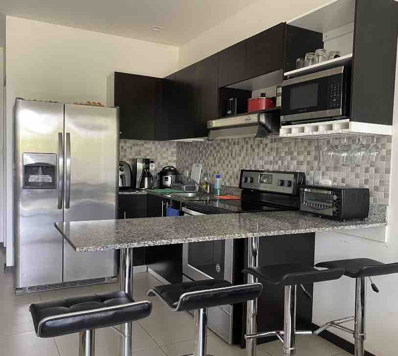This is a private apartment and not just a room. It has a kitchen, full bath, living room/dining area, 1 bedroom, A/C, TV, WiFi and a shared swimming pool. There is a queen size bed and we add a single bed at additional cost for the third guest. In case this apartment is booked take a look of our listing in Casa Pargo we have 6 unit very comfortable. Surrounded by mother nature and amazing views.