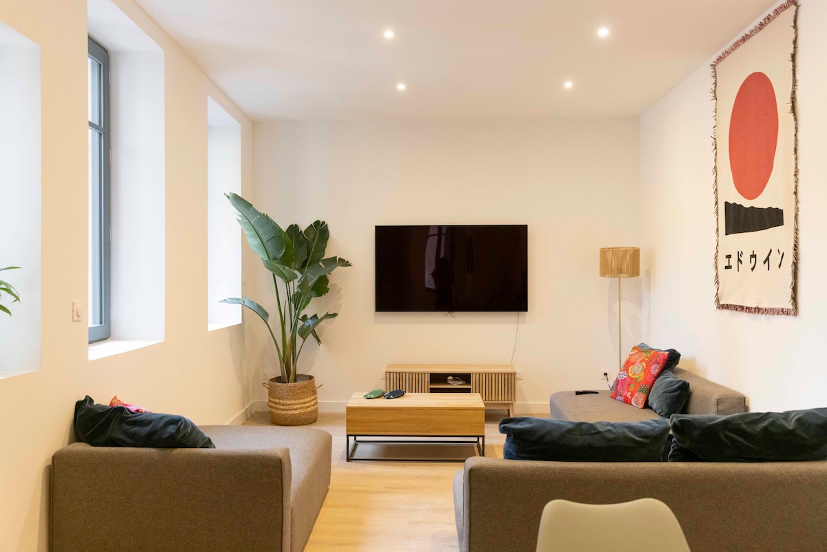 Egyszerűsítsd az életedet ebben a békés, központi térben. Ingyenes Disney + Nagyszerű elhelyezkedés: Halles de Narbonne: 5 perc séta Múzeum,Aréna ,Stadion: 5 perc séta Nagy svédasztalok: 5 perc 🚗 Strandok: 15 perc 🚗 ☀️ Sigean African Reserve: 20 min🚗 Carcassonne városa – 40 perc Ingyenes privát parkolóhely Légkondicionálás Hirdetés: Felújítva teljes konyhával, mosógéppel, kávéfőzővel A házigazdáid a rendelkezésedre állnak, ha tippeket szeretnél adni a városban