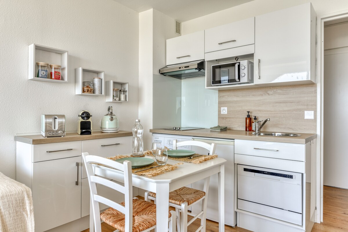 Meleg és tiszta, teljesen felszerelt, nagyon csendes, 21 m²-es (226 láb²), légkondicionált stúdió saját bejárattal és közös helyiségek nélkül. Üdvözlő kávé, eszpresszó, tea, ásványvíz, madeleine, tej, vaj, croissant, lekvár, mikrohullámú sütő és kölcsönözhető KERÉKPÁROK A LES GRANDS BUFFETS, a sigeani állatkert, a városközpont és a strandok közelében. Ingyenes parkolás a járműved számára 10 méterre (garázs motorkerékpárok számára) A közelben található a belvárosba tartó B buszjárat. A stúdióban 32 hüvelykes tévé áll rendelkezésre.