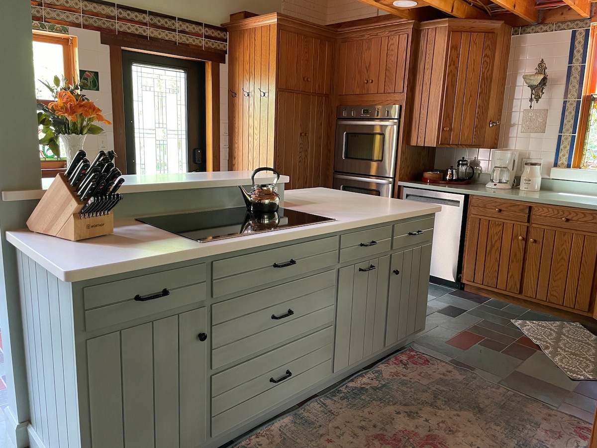 We look forward to welcoming you to the secluded beauty of our space, designed and built by my husband on our 20 acres of wooded property in the rolling hills of Central Ohio. A floor-to-ceiling glass front provides you with a view of fields green in summertime and ripe with goldenrod in the fall, four outdoor deck spaces invite you to relax in the beauty of nature, and a second story loft suite with a soaking tub are ready to provide you with rest and refreshment.
