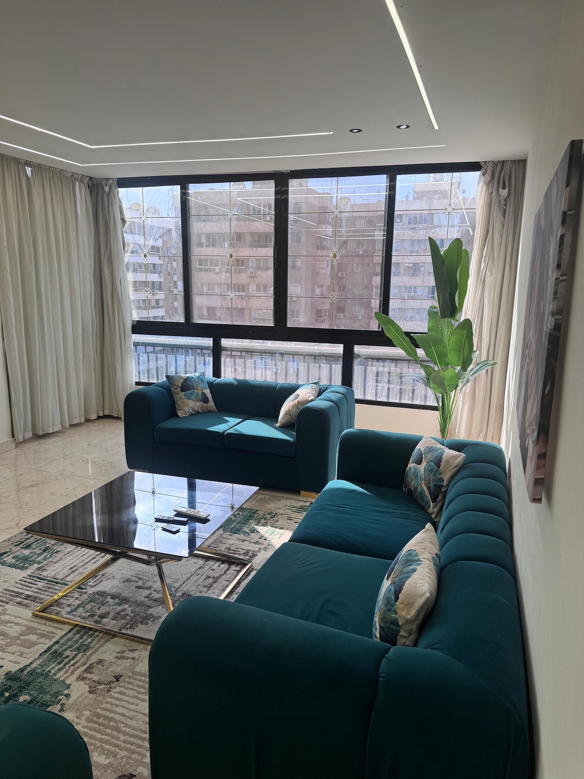 Üdvözlünk az otthonodban, távol az otthonodtól! Ez a modern és kényelmes, 2 hálószobás lakás elegáns dizájnnal, teljesen felszerelt konyhával és tiszta, tágas fürdőszobával rendelkezik. Nasr City szívében, egy csendes utcában található, ahol egyszerre élvezheted a nyugalmat és a kényelmet. Csak egy rövid sétára található a City Stars Mall, az AlMaza Mall, valamint számos kávézó, étterem és üzlet - minden, amire szükséged van a tökéletes tartózkodáshoz, a küszöbödön áll.