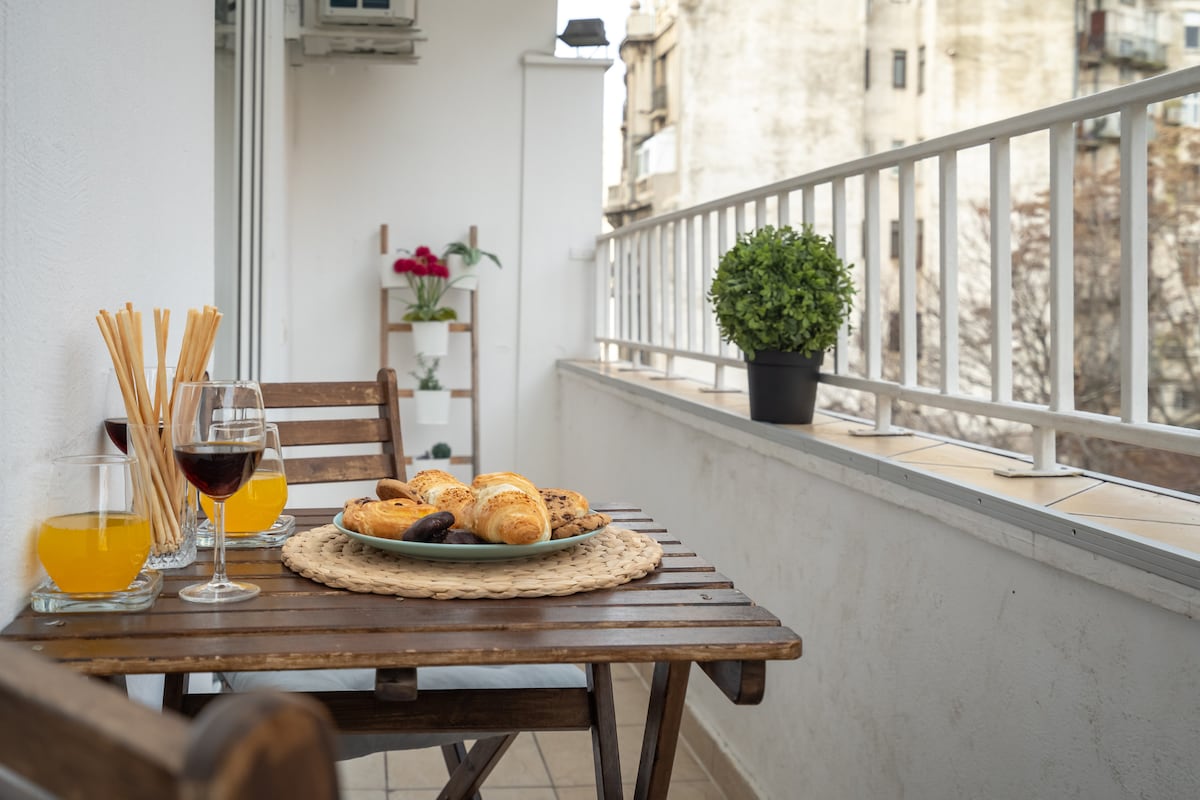 Experience the charm of our urban loft in the heart of the city! Enjoy the peace in our elegant bedroom, with wide windows that fill the room with sunlight, and settle into a luxurious marble bathroom. Located in a lovely neighborhood, this inviting space offers a fully equipped kitchen, a relaxing living area, and a small balcony. Perfect for the modern traveler who values style and comfort. Book your stay - delight in the simple luxuries and make this loft your personal hideaway.