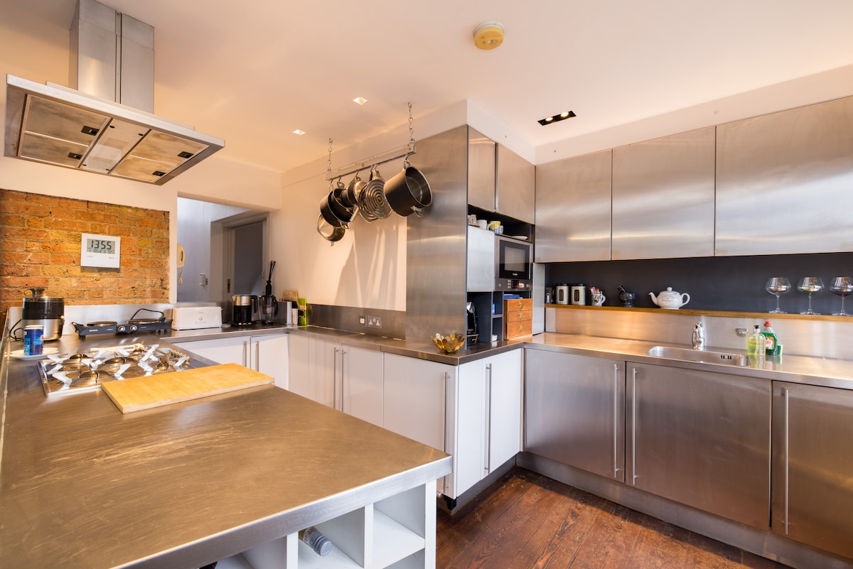 Az Emulsion építészek díjnyertes irodája alkotta meg ezt a duplexet, amely a brutalizmus és az indusztriális stílus elegye. A Kennington Village szívében található egykori kesztyűgyárat újragondolták, és a háromszintes épületet a Charlie Chaplin egykori otthona mellett alakították ki. 2 megálló a Trafalgar Square-től, a Soho-tól és a West Endtől – 6 megálló az East End vibráló művészeti közösségeitől – privát tetőterasz vagy a város sziluettje. Ezen a szálláshelyen tilos a gyermekek fogadása, és a legfelső emeleti lakás egy olyan épületben, amelyben 3 másik lakás is található, így némi zajra lehet számítani.