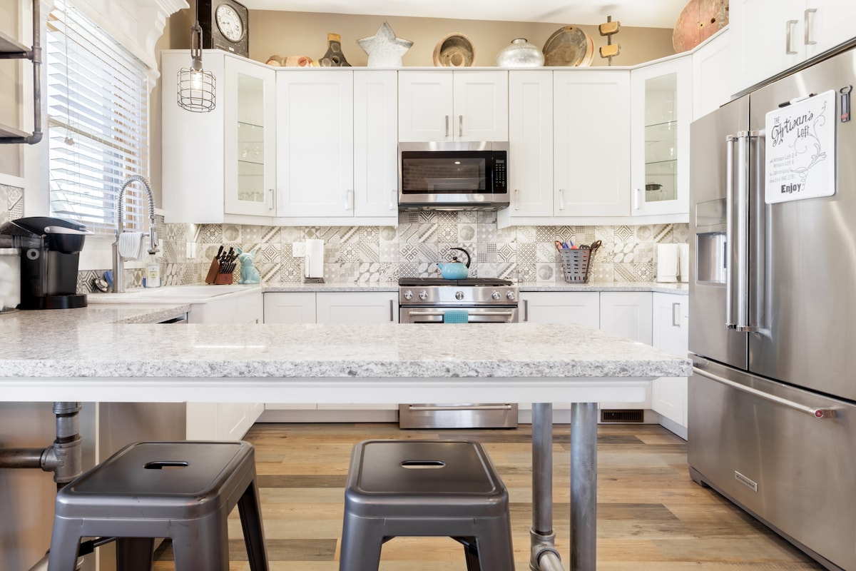 Gyere és élvezd a város egyik menedékét. Csendes, otthonos carriage house-unk sétatávolságra található a fényvasúttól, a RiNo művésznegyedtől, az éttermektől és több tucat kézműves sörfőzdétől. Nagy sebességű optikai internetet biztosítunk. A 70-es évektől egy mérföldre található hegyi utazás 30 percen belül esedékes. A lakás tele van természetes fénnyel és az otthon minden kényelmével. Egy franciaágy a hálószobában és egy memóriahabos matrac a kanapéágyon négy felnőtt kényelmesen megszállhat a szálláshelyen.