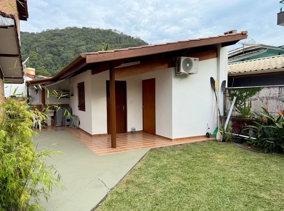 Se você busca um refúgio tranquilo e confortável para se conectar com a natureza, curtir família e amigos, nossa casa de hóspedes é a escolha perfeita! Com capacidade para até 8 pessoas, nossa propriedade a 400 metros da praia, oferece tudo o que você precisa para uma estadia inesquecível. Você ficará em uma casa de hóspedes localizada no mesmo terreno da casa principal, entretanto com total privacidade e uso exclusivo da área externa.