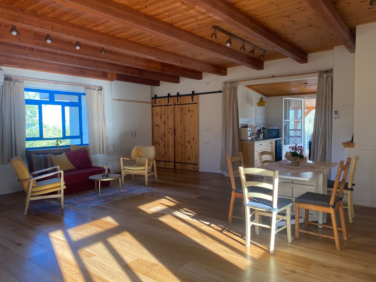 ëーħņi Galilee - Gino 's House unique Guest Suite is located in a quiet and special place, with lots of nature around, among 80 years old - 9 olive trees. A helyszín kényelmes, és lehetővé teszi a gyors hozzáférést az összes látnivaló az északi; Nagyon közel a Galileai-tenger és a Golan Heights. Nyugodtan pihenhet a ház minden romantikus területén, amely a pásztori tájra néz; Az udvaron a pekándiófa alatt, a tágas erkélyen, a függőágyon vagy a hintákon, bárhol választhat.