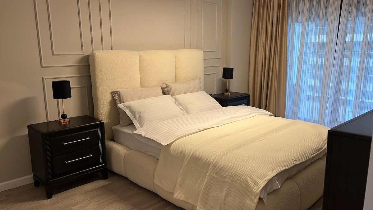 A lakás egy új épületben található, nagyon szépen berendezett, illatos és barátságos. A közelben szupermarketek és a strand is található, és azok számára, akik szórakozni szeretnének, néhány száz méterrel távolabb található a klub területe, csak hogy emlékezzenek a visszaútra🥳.