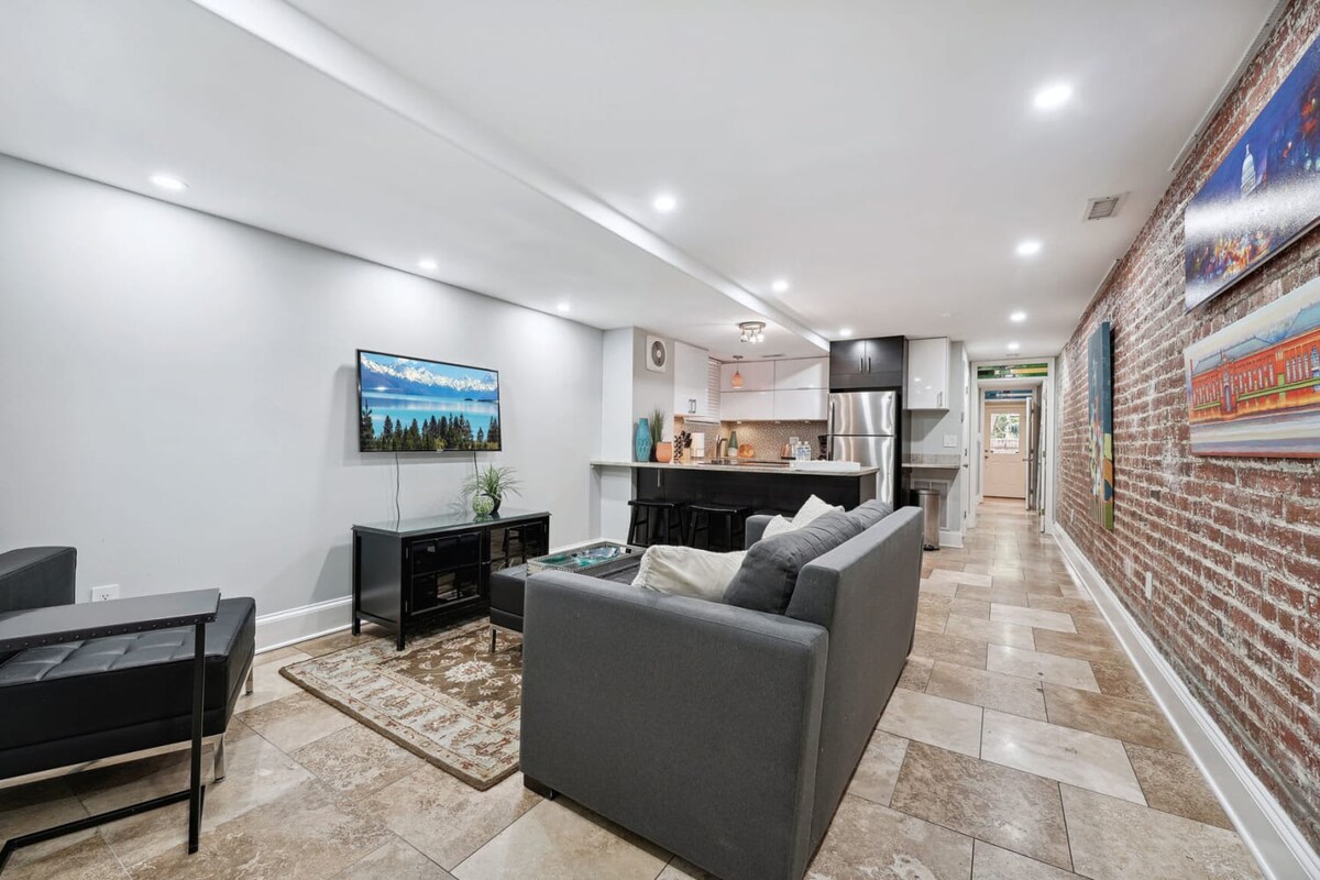 - Bájos alsó szintű lakás egy történelmi Capitol Hill sorházban. – Saját bejárattal, teljesen felszerelt konyhával és hangulatos bútorokkal rendelkezik – tökéletes rövid vagy hosszabb távú foglalásokhoz. – Professzionálisan takarítva, hogy minden alkalommal friss, barátságos élményben legyen részed. – Sétatávolságra az Egyesült Államok Capitoliumától, a Navy Yardtól, a Nationals Parktól és három metróállomástól.