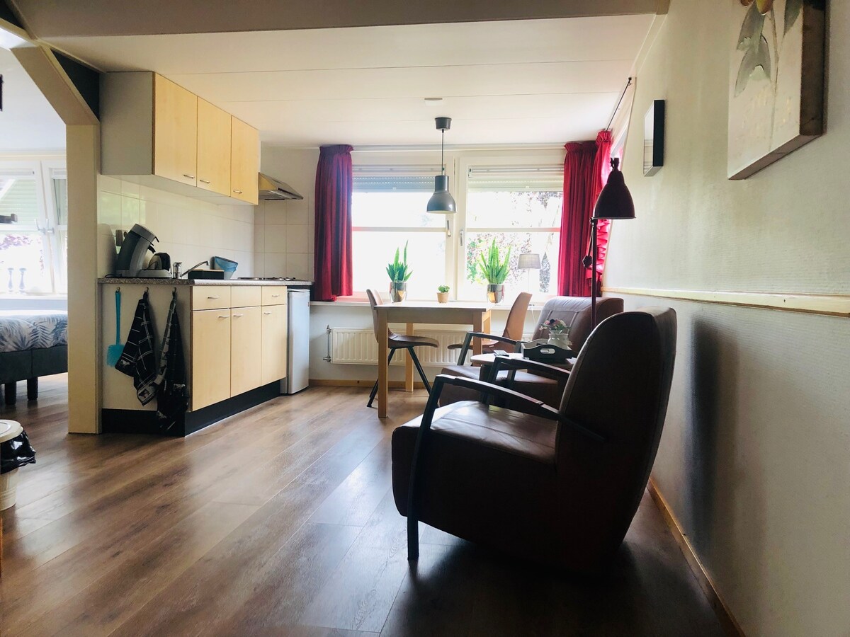 Finom, szabadon elhelyezkedő gyümölcsöskunyhó, amely a hollandiai gyümölcskertben található alma- és körteültetvényre néz: a Betuwe. Stúdió két ággyal. Teakonyha hűtővel, 2 égős indukciós főzőlappal, kávéfőzővel és vízforralóval. Külön mosdó, zuhanyzó és vécé. A Waaltól és ártereitől pár lépésre, Arnhem, Nijmegen és Tiel városi háromszög közepén. 5 percre az A15-ös úttól. Babaágy és etetőszék is rendelkezésre áll.