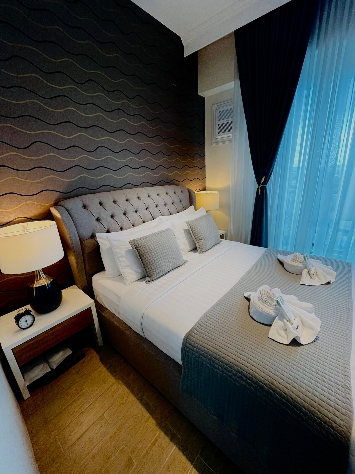 Welcome to our stylish condo in the Parisian-themed St. Dominique, Megaworld Iloilo! Ideal for families, friends & business travelers. This 2BR + compact extra room features a king-bed master’s BR, cozy guestroom, and a small third room with a single bed. Enjoy 65” TV w/ Netflix, 300 Mbps Wi-Fi, full kitchen & washer. High-floor corner unit with city & sunset views—walking distance to Iloilo Convention Center (ICC), Festive Walk & Festive Mall!