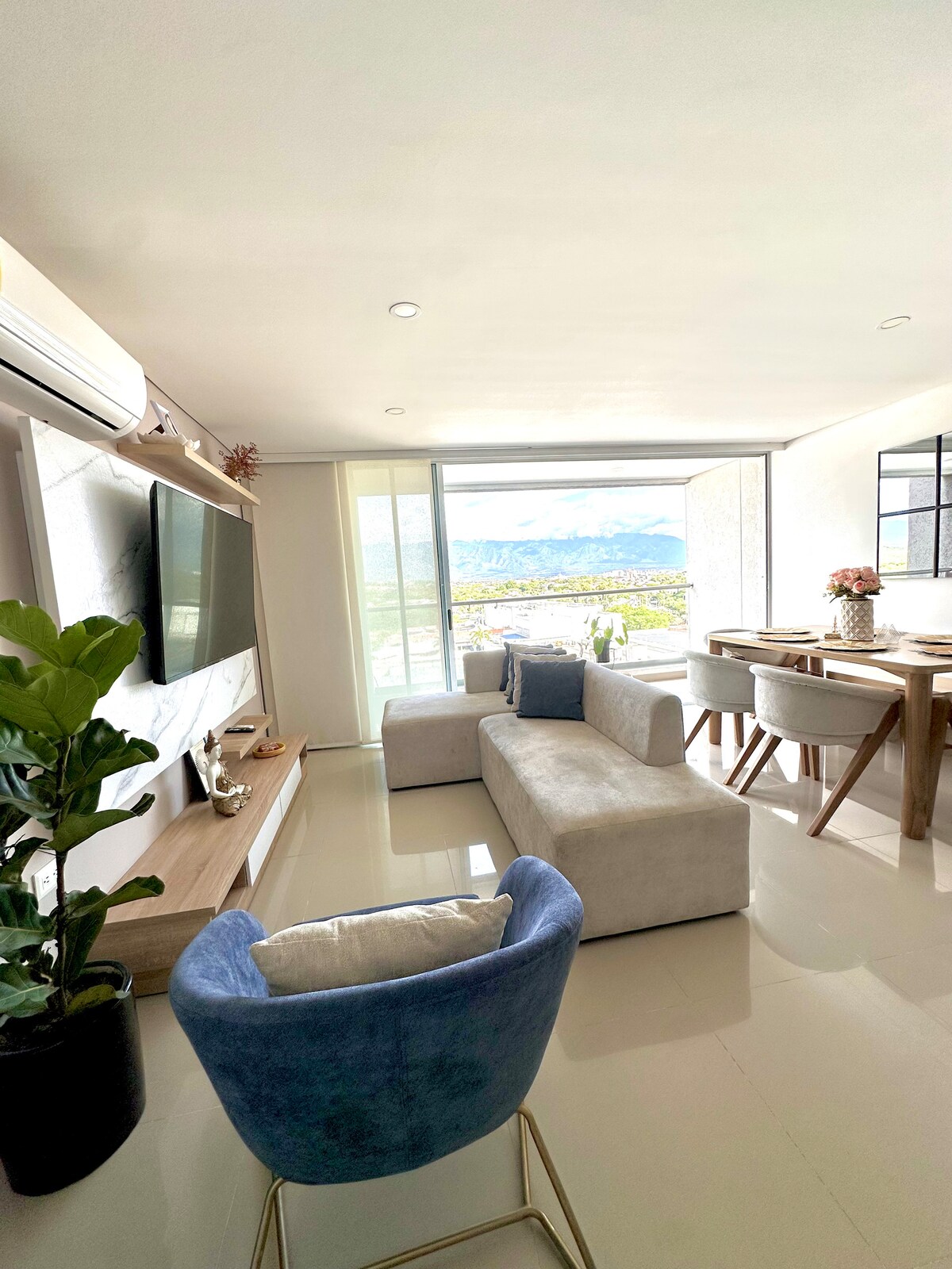 Fényűző és elegáns lakás Neivában, amelyet úgy terveztek, hogy kényelmet és stílust kínáljon. 1 fő hálószoba king méretű ággyal és saját fürdőszobával, két kiegészítő hálószoba kétszemélyes ággyal, kiegészítő fürdőszoba és egy nagy nappali, erkély és látványos kilátás a repülőtérre. Nyitott terű konyha, stúdió, Wi-Fi, légkondicionálás, két privát parkolóhely, minimalista dekoráció, olyan kényelmi szolgáltatások, mint a 360°-os városi kilátást nyújtó terasz, grillezőterület, végtelenített medence, jakuzzi, edzőterem, szauna, törökfürdő.