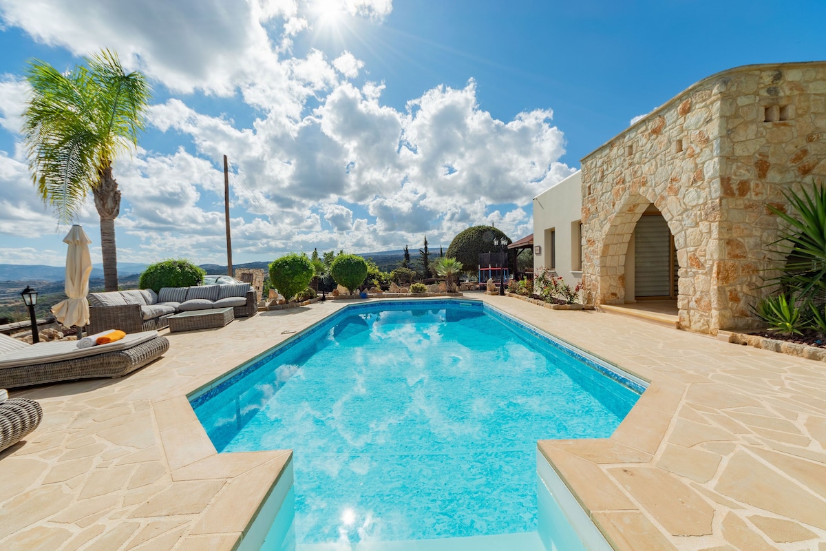 Lépj be a nyugalomba! Menekülj egy napsütötte búvóhelyre egy nyugodt domboldalon. Pihenj a medencénél, szívd magadba a napsütést, és élvezd a lélegzetelállító kilátást a tengerre és az aranyló naplementéket. Paphostól mindössze 15 perces autóútra található két bájos stúdiónk tökéletes kiindulópont a felfedezéshez. Strandok, természetes ösvények, kikötő, Kék-lagúna és Paphos óvárosa mind 15-30 perc autóútra. Ingyenes Wi-Fi, parkolás, falusi tér fogadók és borozó, mindössze 4 perc autóútra. Az autó elengedhetetlen. Medence egész évben nyitva (nem fűtött).