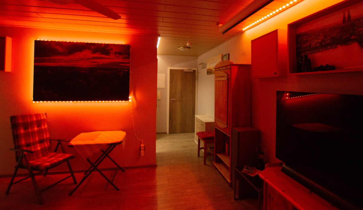 I offer you a comfortable, family friendly bright flat with an individual flair in a beautiful environment with panorama view. There are 3 bedrooms, a nice livingroom with kitchen and a cosy fireplace. The house is colorful and artistically designed. The train station is close with a good connection to Frankfurt/Mainz/Wiesbaden. Furthermore, there are loads of beautiful hiking trails and excursion possibilities. You are warmly welcome!