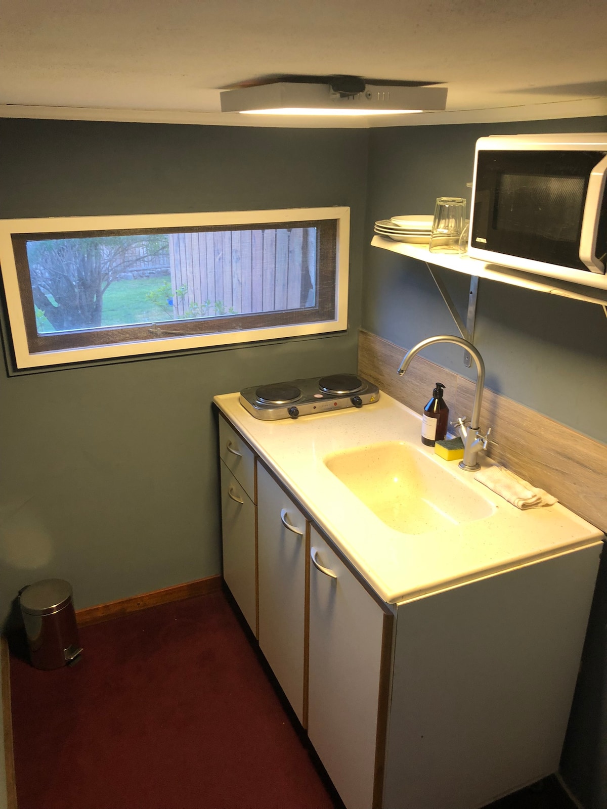Pequeño monoambiente, entrada privada, baño completo y kitchenette (horno eléctrico y anafe), pava eléctrica, utensilios de cocina y heladera. Mesa pequeña y sillas. Sin t.v. En épocas de nieve o/y heladas es difícil llegar hasta el estacionamiento de arriba, por lo tanto se debe dejar el auto en el estacionamiento de abajo y subir por escaleras. También podrás encontrar una puerta cerrada que te lleva a un lavadero, el cual está clausurado por reformas