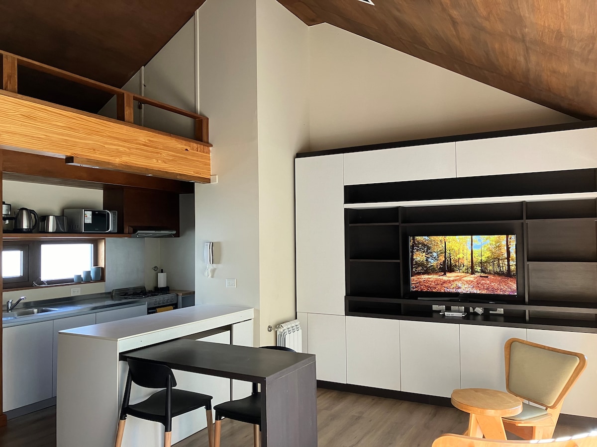 Hermoso monoambiente en el centro. Diseño minimalista y sustentable. Cama Queen. Baño completo con cabina de ducha. Cocina equipada con vajilla, hervidor, tostadora, microondas, heladera con freezer, cocina a gas y extractor de aire. Televisor Smart TV Full HD 47 " (Android TV) Streaming por fibra óptica. Red WiFi de 500 Mb. Calefacción central con termostato individual y agua caliente general.