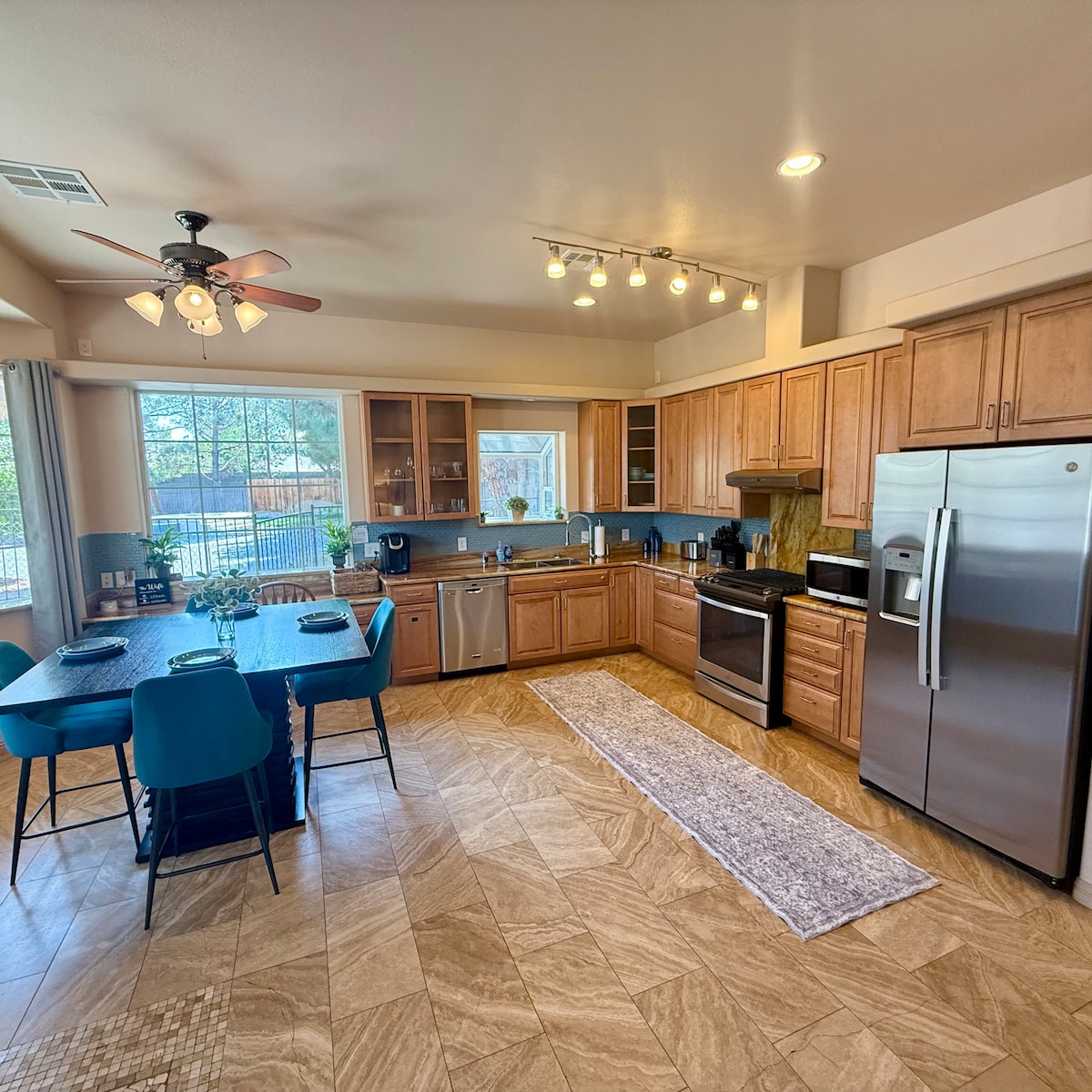 Nincs takarítási vagy üdülőhelyi díj, amit ki kell fizetned! Pihenj és pihenj ebben a felújított luxusotthonban rusztikus hangulattal. Ez az otthon Las Vegas északnyugati részén található (kb. 20 percre a sztriptíztől). Hátsó udvar oázisa veszi körül, amely kilátást nyújt a medencére, a nagy fenyőfákra és a természetre. A vendégeknek saját privát hozzáférésük, privát kis udvaruk és parkolóhelyük lesz. A ház egy csendes zsákutcában található, amely tele van természethangokkal. Szívesen látjuk a kölyköket, a vendégház külön kutyafuttató területtel rendelkezik (a háziállatokat a házigazdának jóvá kell hagynia).