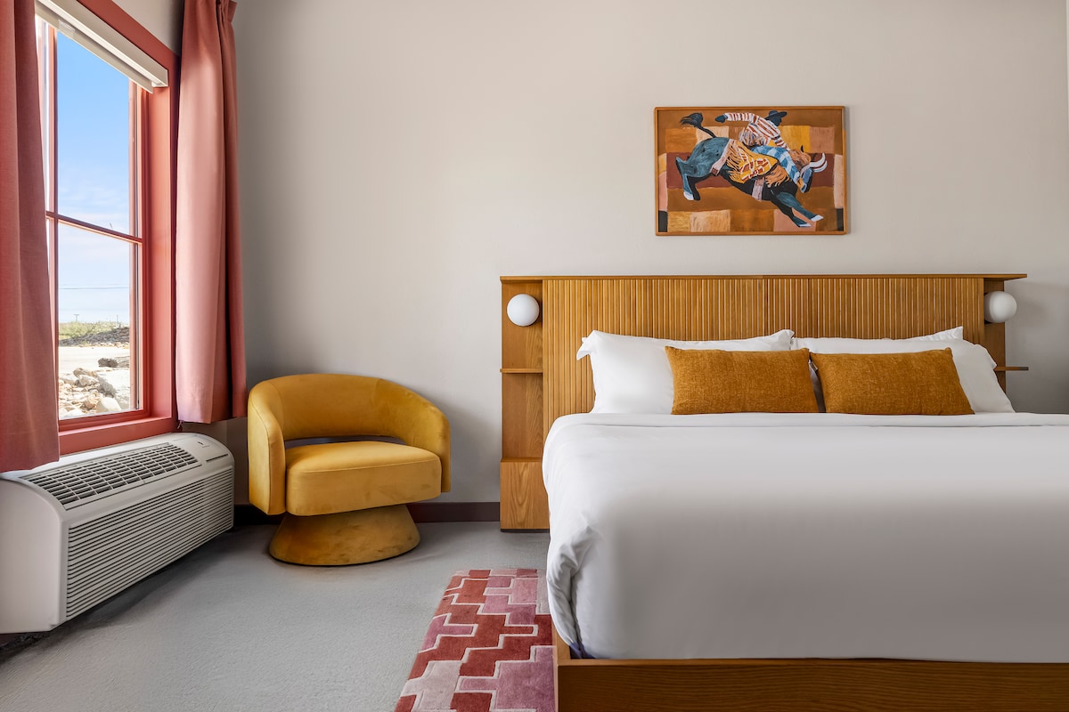 Rúgd le a csizmádat, és maradj egy kicsit. Ez a szoba pont olyan, mint amire szükséged van egy laza Hill Country-i kiruccanáshoz. Egy plüss king méretű ágy, egy privát fürdőszoba esőzuhanyzóval, és olyan átgondolt részletek, mint a mikrohullámú sütő, a minihűtő és az elektromos vízforraló, ha éjféli nassolnivalókra vagy reggeli teára van szükséged. Ingyenes teával és kávéval, hajszárítóval és alapvető piperecikkekkel láttuk el, hogy könnyű poggyászban utazhass. Egyszerű, könnyű, a tiéd.