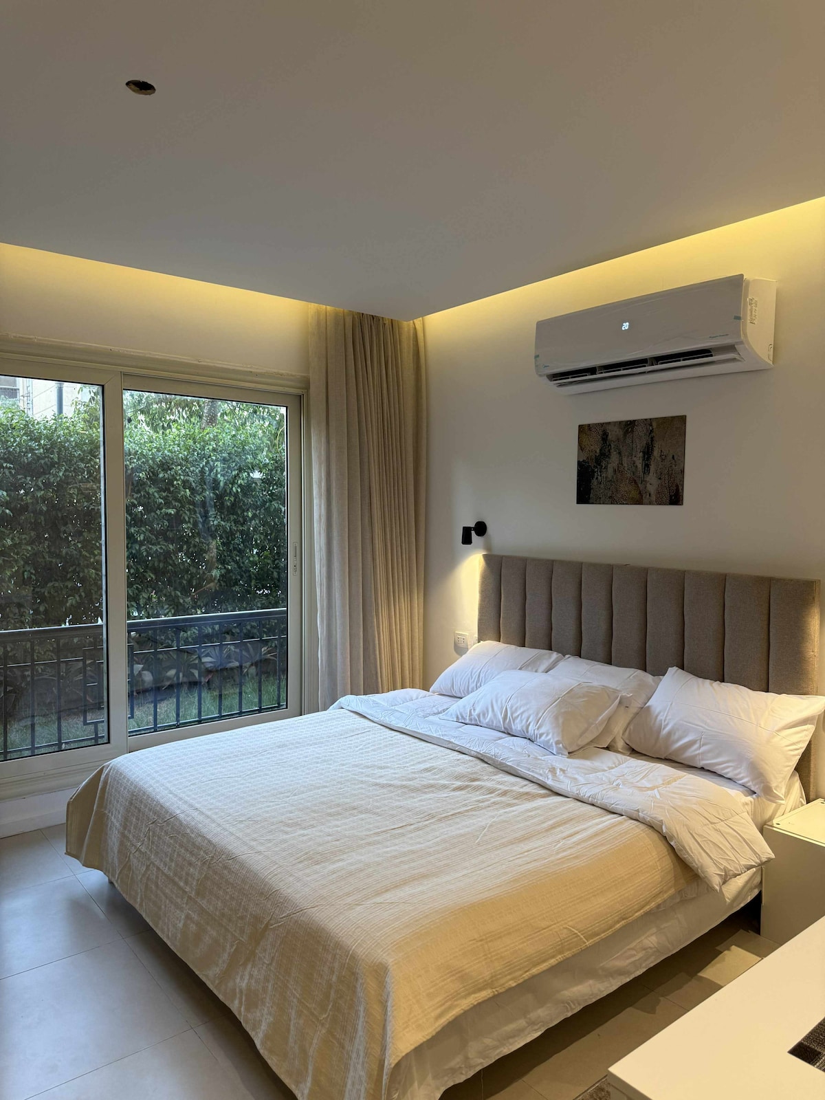 Üdvözlünk stílusos, egy hálószobás lakásunkban: Küldj nekünk üzenetet szezonális és különleges kedvezményekért. ●Hálószoba (queen méretű + kanapéágy) ●Nappali (okostévé + kanapé) ●Étkezőhelyiség 3 fő számára ●Elegáns fürdőszoba ●Teljesen felszerelt teakonyha A város szívében található hely pillanatokra van a trendi kávézóktól, az élénk éjszakai élettől és a legjobb éttermektől. ●WaterWay 5A, ●District 5 Marakez ●Uavenues ●A meghajtó ●Katameya ●Garden 8 ●El Malahy ●CFC ●Arabella és sok más helyszín. További ajánlásokért vedd fel velünk a kapcsolatot.