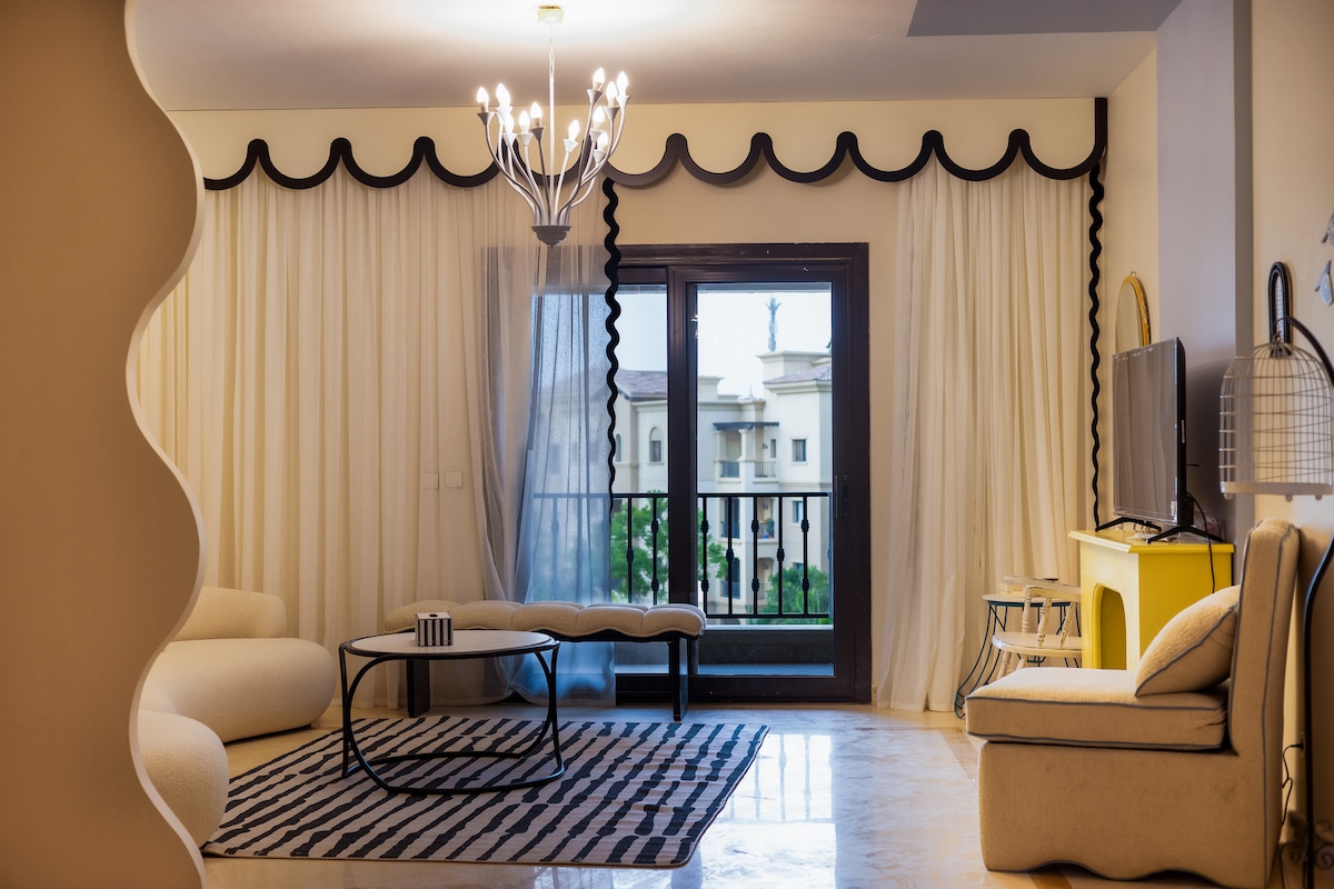 Lépj be egy igazán egyedi, két hálószobás neoklasszikus lakásba saját kerttel. Minden részlet egyedi tervezésű, a merész, színes dekorációtól kezdve a gyönyörűen kialakított bejárati, étkező- és nappali területekig. Élvezd a békés kerti kiruccanást, amely tökéletes a pihenéshez vagy a szórakozáshoz. A Sodic Villette komplexumban, a New Cairo aranytér szívében található otthon kényelmet, stílust és karaktert kínál, mint senki más. Egyedülálló szállás a művészetet, a dizájnt és az egyéniséget értékelő vendégeknek.