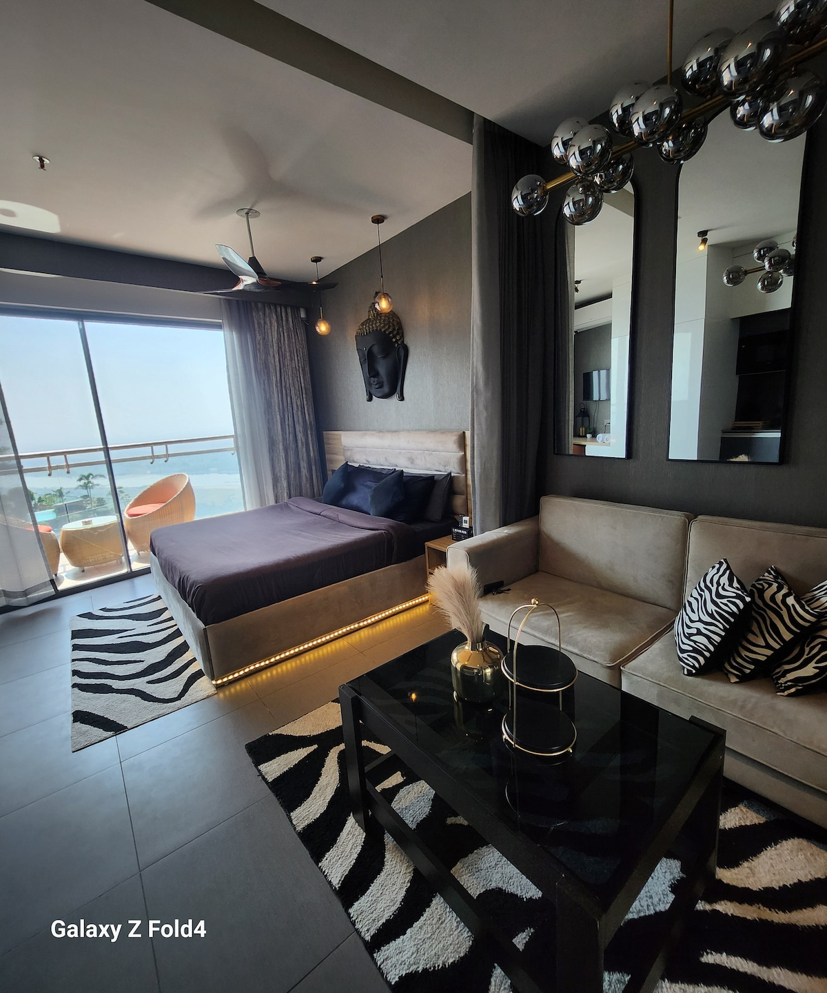 Introducing our exquisite luxury studio apartment: Nestled in the heart of the city, this opulent studio boasts modern elegance and unparalleled comfort. The open-concept design invites you into a spacious haven, bathed in natural light from the large windows that offer breathtaking city views. This apartment is on the 41st floor in one of the tallest sky scraper in Delhi - NCR. The apartment has a river facing view from the balcony!!