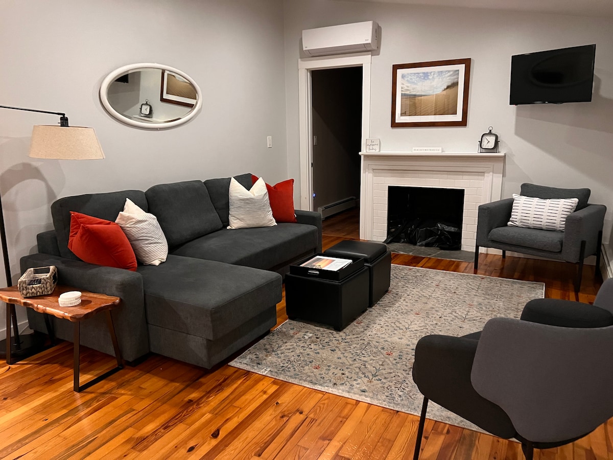 Ez a nemrég felújított házikó egy csendes sikátor tetején található, ahonnan magával ragadó kilátás nyílik a rétre. Egyszintes. Két hálószoba négyszemélyes (franciaágy és két egyszemélyes ágy); új, jól felszerelt konyha és egy fürdőszoba, nyitott nappaliterület, terasz és terasz. Világos és tágas. Működő kandalló, központi légkondicionáló; W/D; bővített kábeltévé és wifi; két autó számára az utcán kívüli parkolás. Piac/csemegebolt a közelben; kellemes séta (kevesebb mint egy mérföldre Mystic központjától)- éttermek, üzletek, kikötők stb. Az Amtrak állomás közelében. Nagyszerű elvonulás!