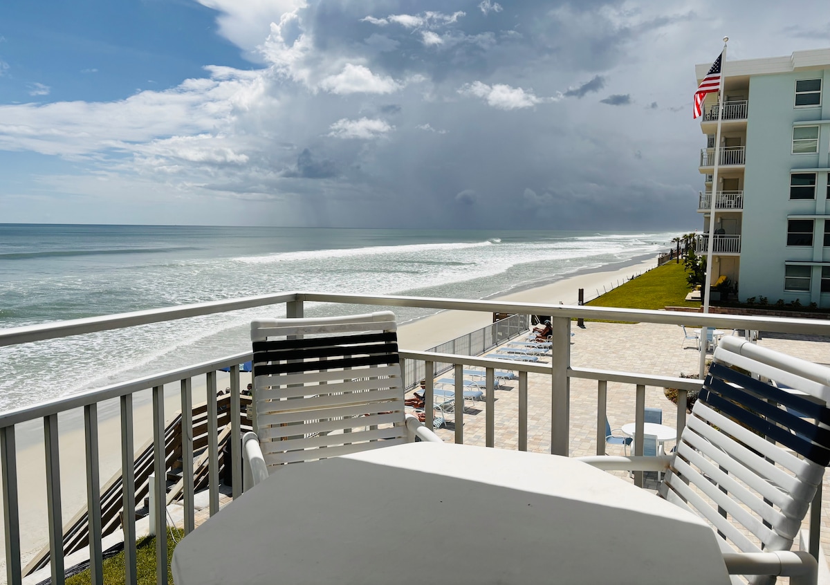 NIGHTLY PRICE REDUCED due to Building renovations restricting our balcony usage. There is no access to the balcony currently and the view will obstructed*. ON THE BEACH! Your very own cozy spacious studio in Daytona Beach Shores is the serene beach of Daytona and just a few short minutes away from a variety of activities and restaurants. Our 6th-floor unit is completely remodeled with free dedicated 45+Mbps WiFi, a full kitchenette, and free parking. *Balcony unavailable until March.