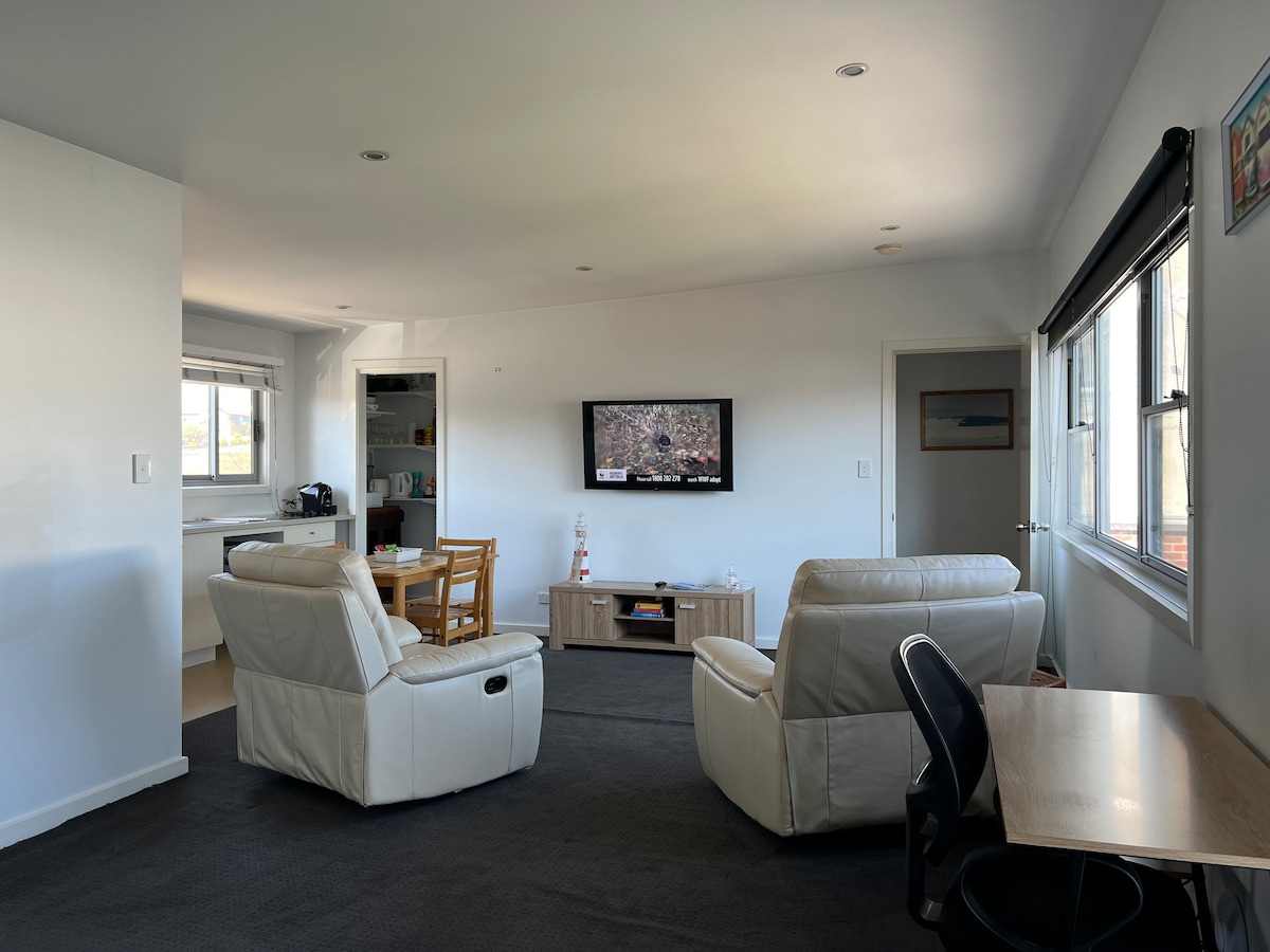 Az újonnan felújított lakóegység akadálytalan kilátással büszkélkedhet Newcastle működő kikötőjére és a gyönyörű Ballast birtokra. Tartalmazza a queen méretű ágyat és a fürdőszobát, samponnal, hajkondicionálóval és minden ágyneművel. Teljesen felszerelt teakonyha tea- és kávéfőzővel, kenyérpirító, főzőlap, serpenyő, serpenyő, szendvicssütő és mikrohullámú sütő. A társalgó fordított ciklusú légkondicionálóval, dupla bőrből készült fekvőhellyel és 42 hüvelykes LCD TV-vel rendelkezik. Ingyenes kontinentális reggeli is jár hozzá.