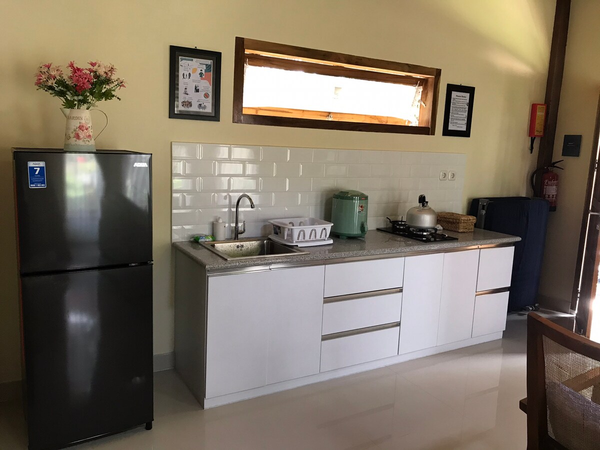 Ez a világos és hangulatos ház félig nyitott konyhával és napkeltei terasszal gyönyörű panorámakilátást nyújt a rizsföldekre. Bár vidéken található, mindössze 15 percre található Jogja városközpontjától. Német-indonéz család vagyunk, a közelben élünk, és évek óta szeretjük ezt a környéket. A mezőkön fújó hideg szél – a „Sawah Breeze” – és a természet nyugtató hangjai arra hívnak, hogy ellazulj, és elfelejtsd a mindennapi életet. Az ár tartalmazza az egészséges, házi készítésű reggelit.