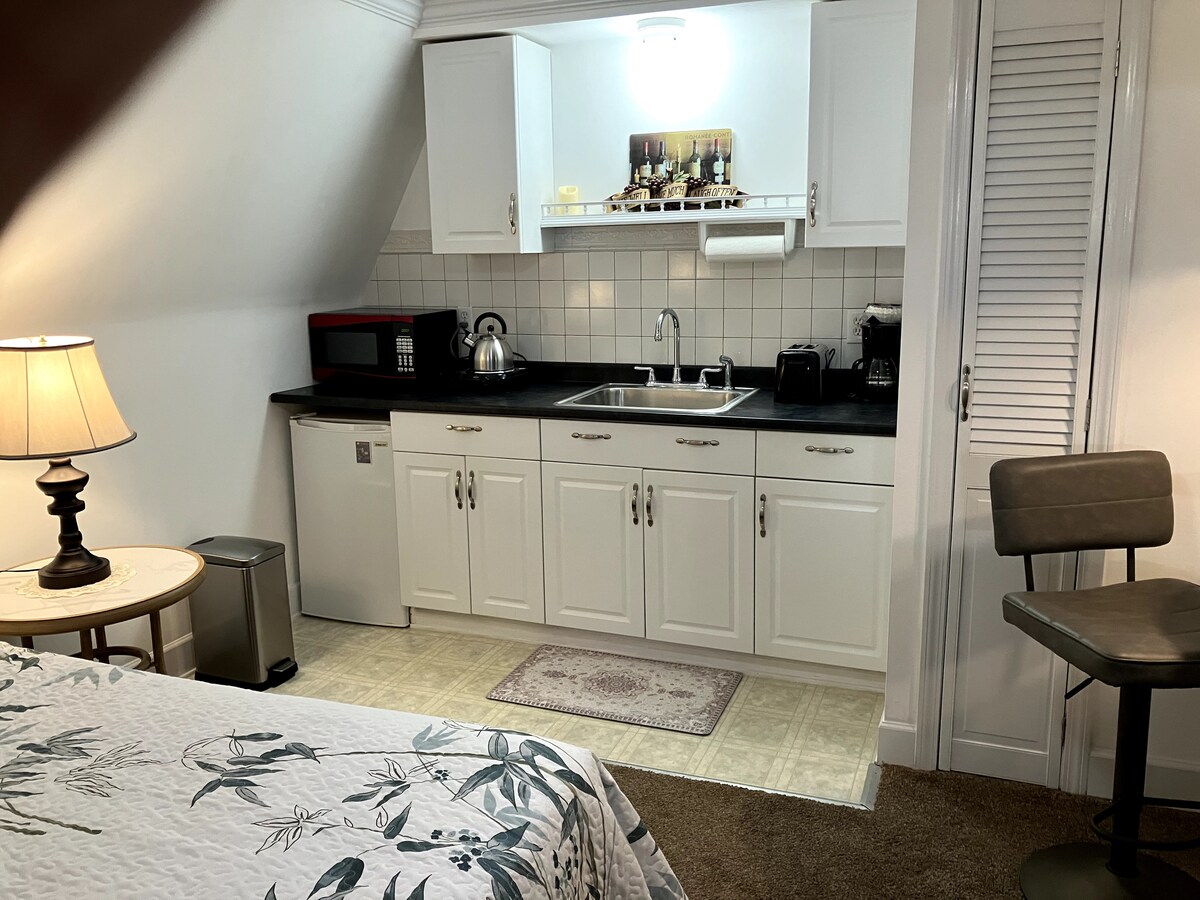 Perfectly located on Center Street, this fully remodeled second-floor retreat blends modern comfort with a touch of charm. Enjoy a well-equipped kitchen, cozy living area, comfortable bedroom, and upscale bath—all with a clean, stylish aesthetic. French doors open to views of Center Street, just steps from shops and dining. The Lower Niagara River and Artpark are nearby, and Niagara Falls is only 10 miles away—an ideal base for exploring the area.